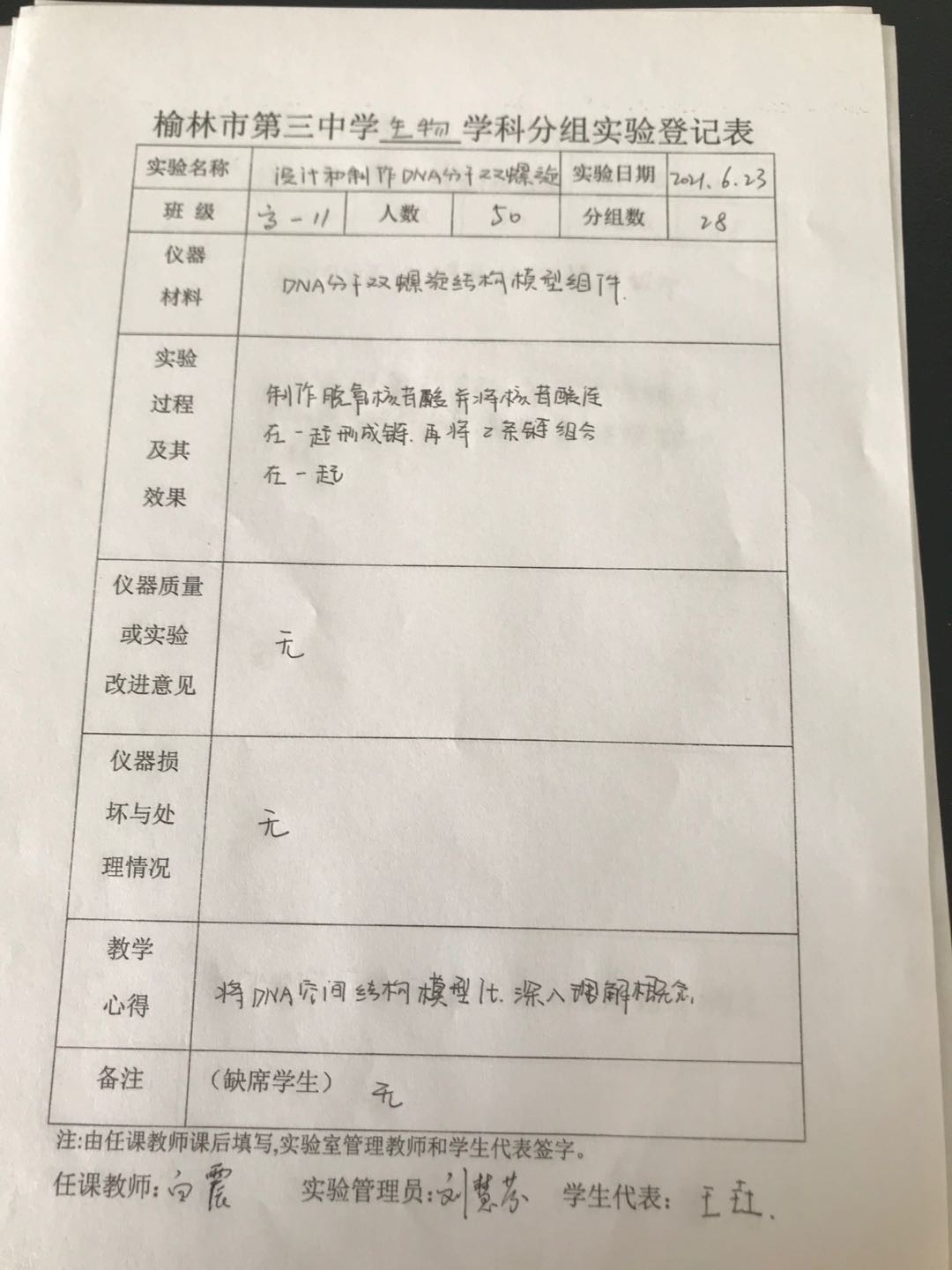 实验登记表