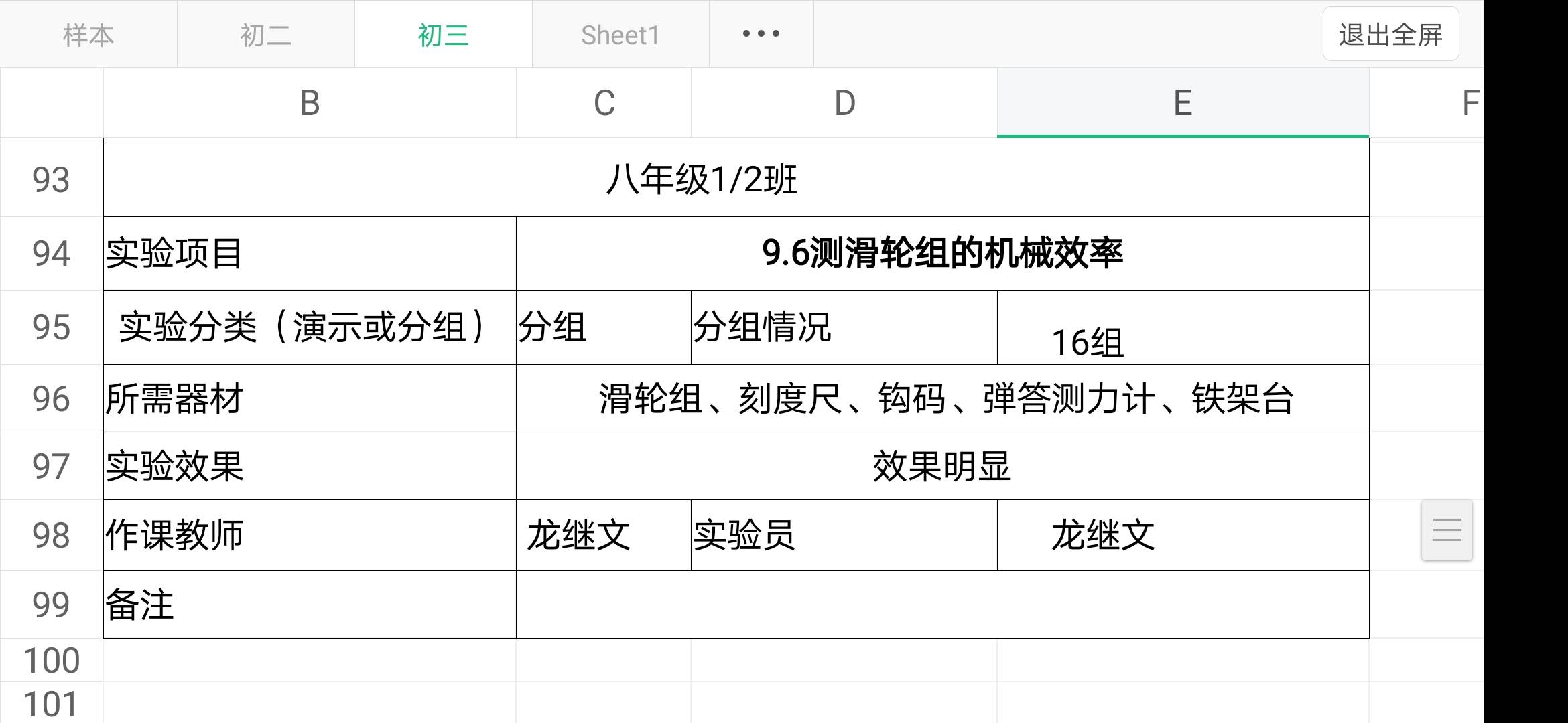 实验登记表