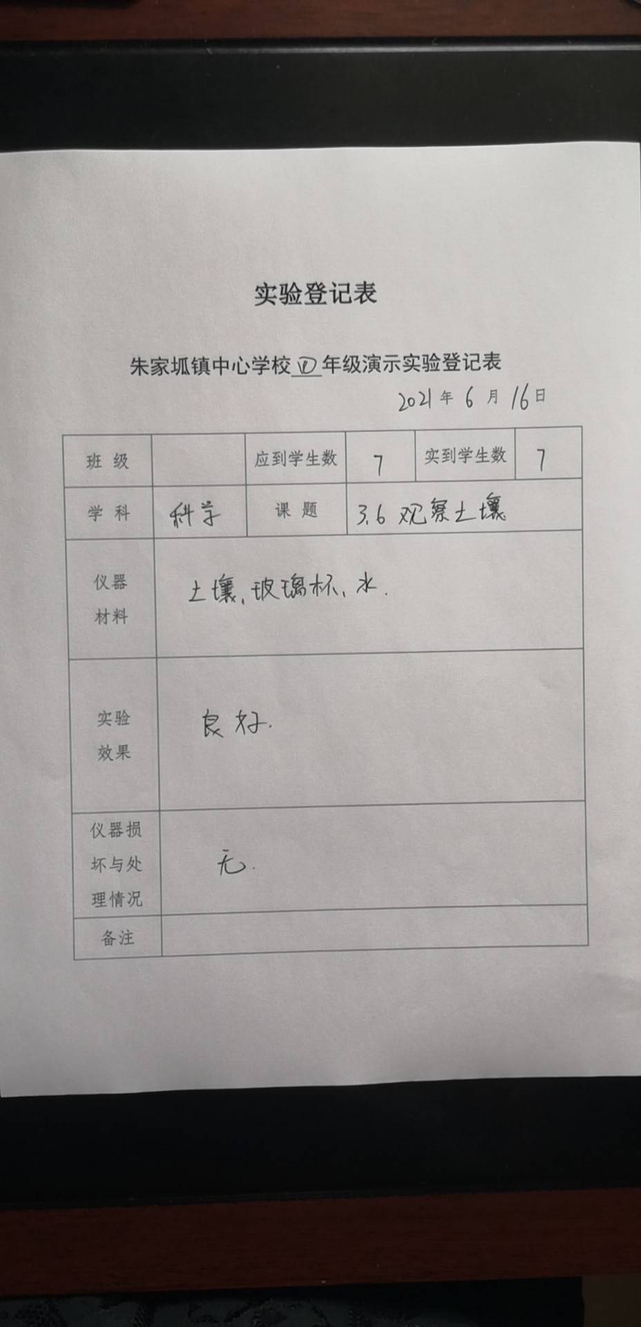 实验登记表