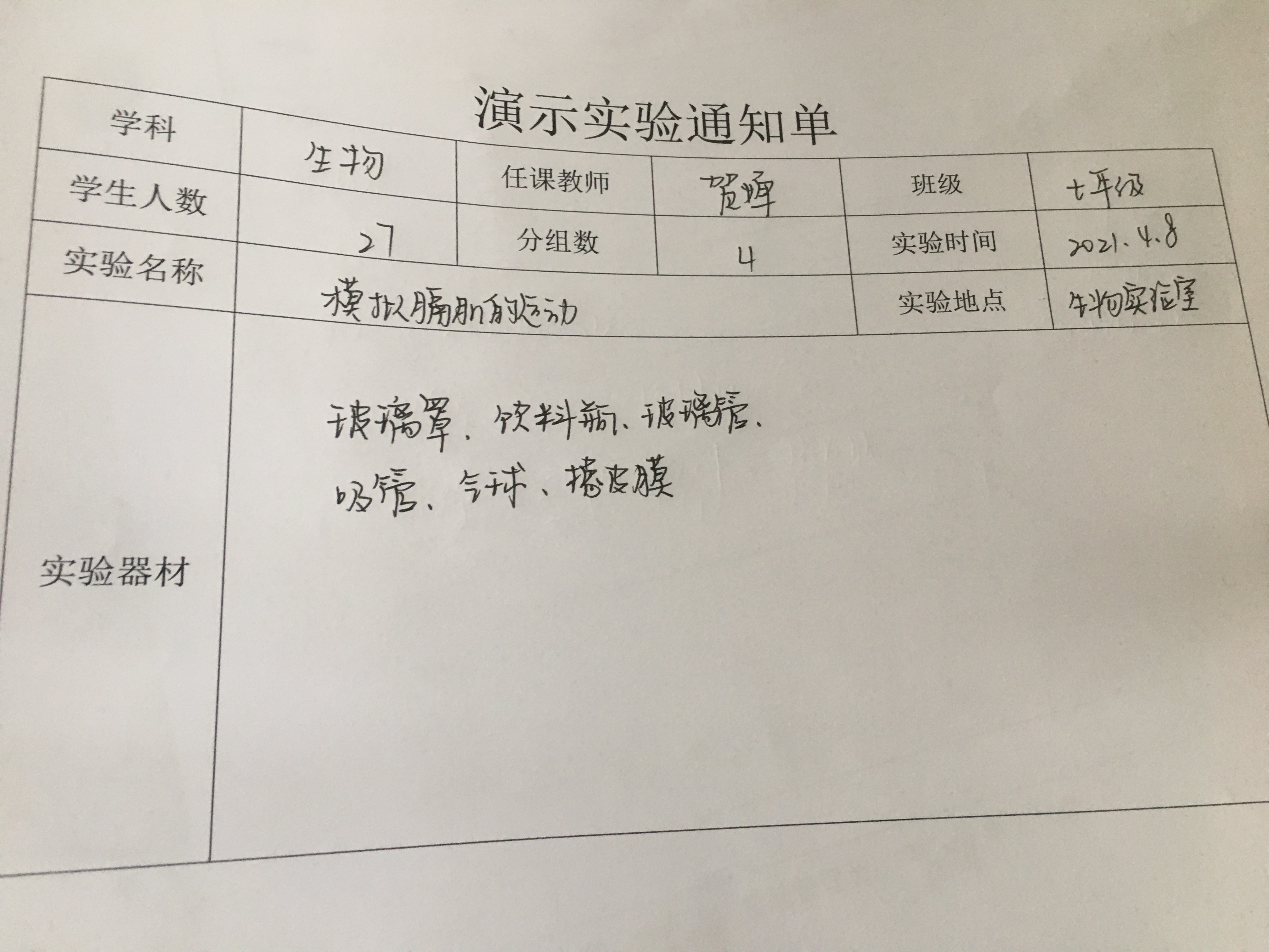 实验登记表