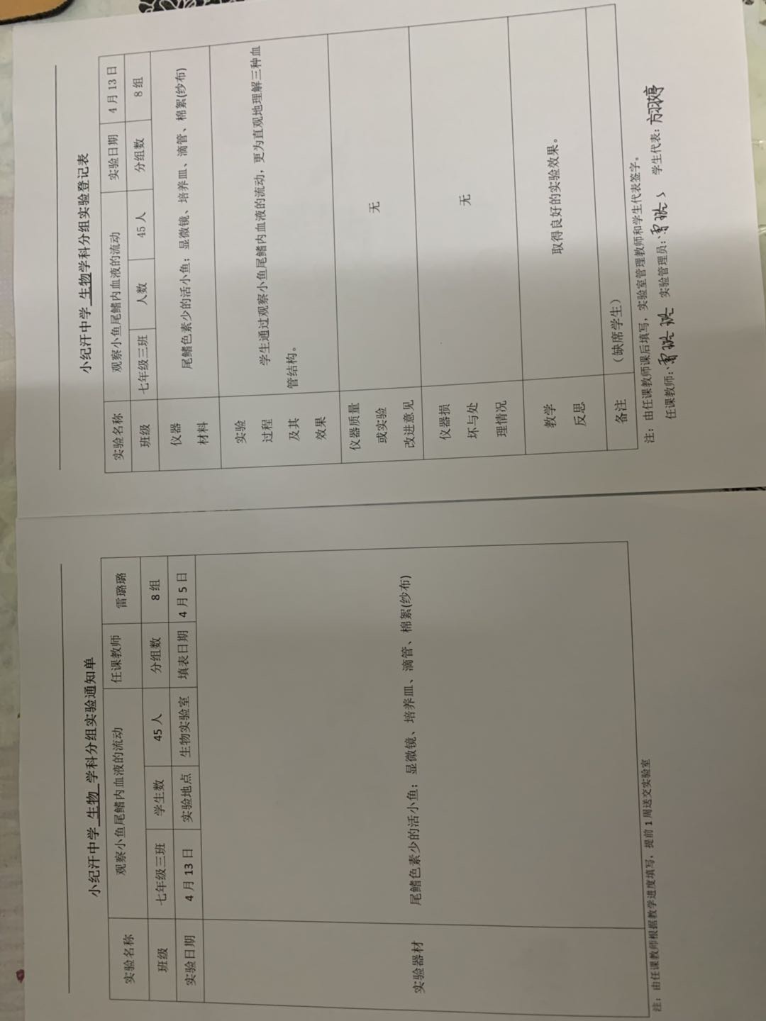 实验登记表