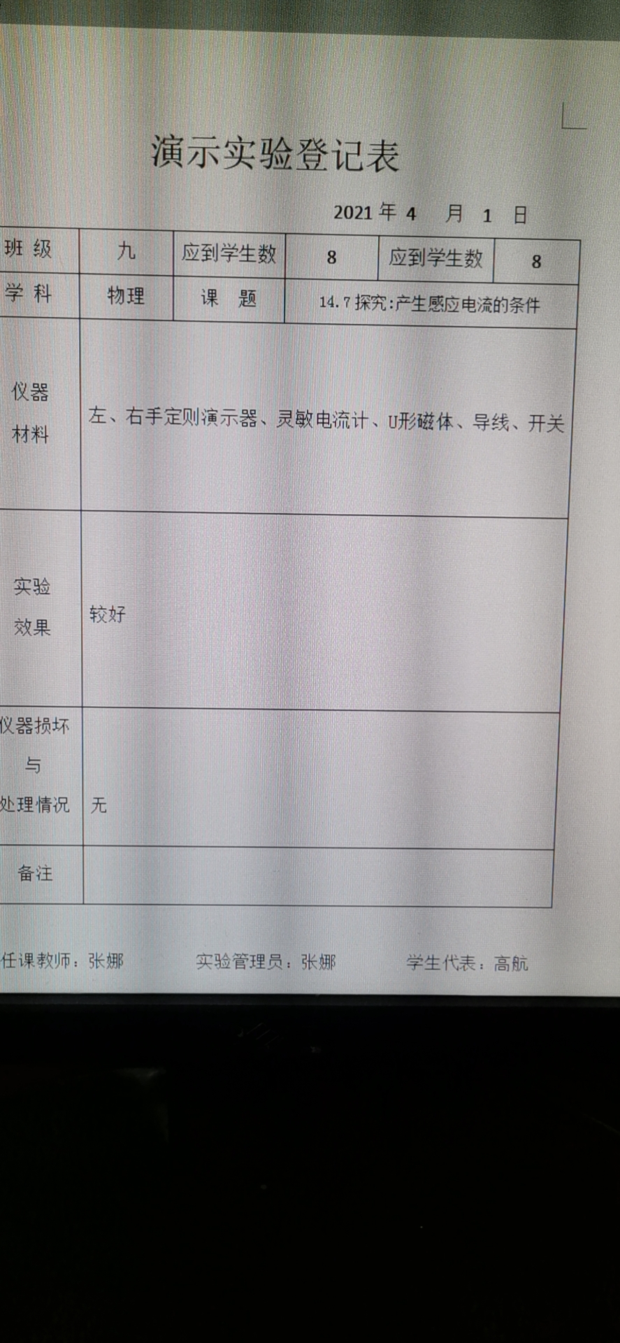 实验登记表