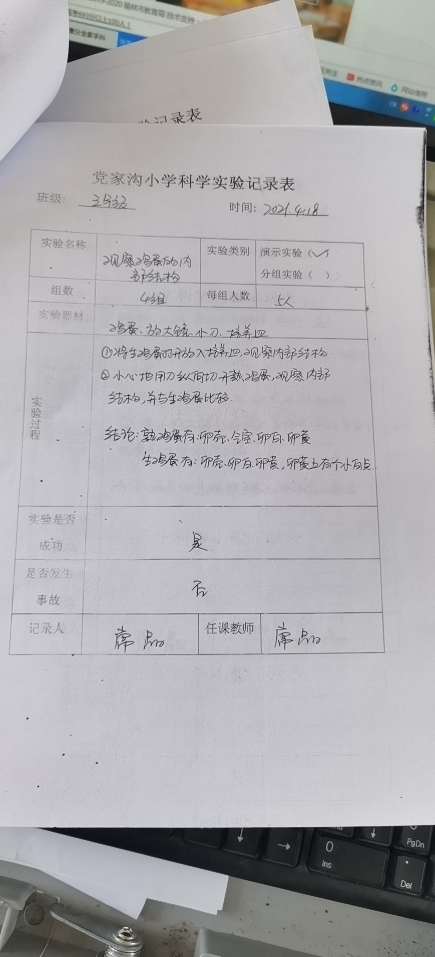 观察鸡蛋的内部结构