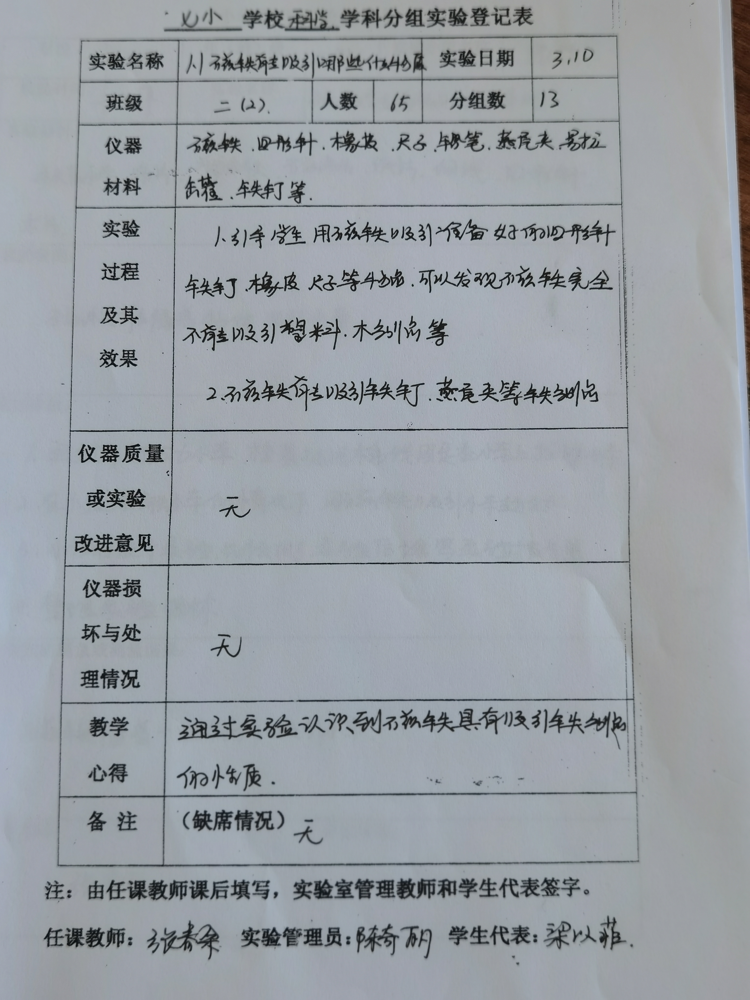 实验登记表