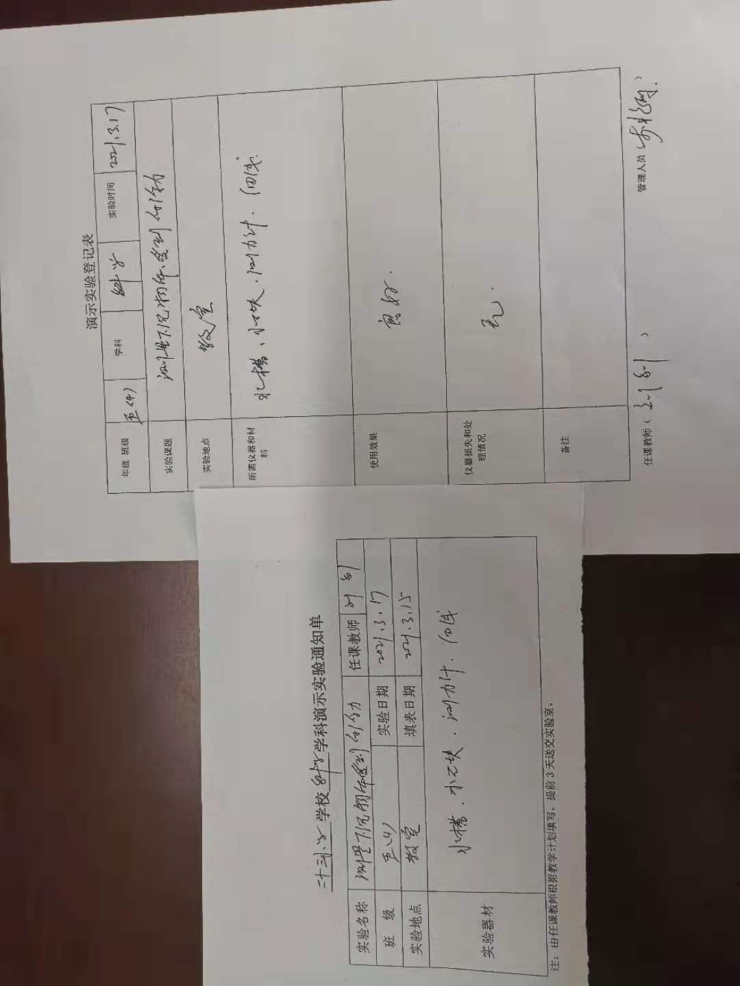 实验登记表
