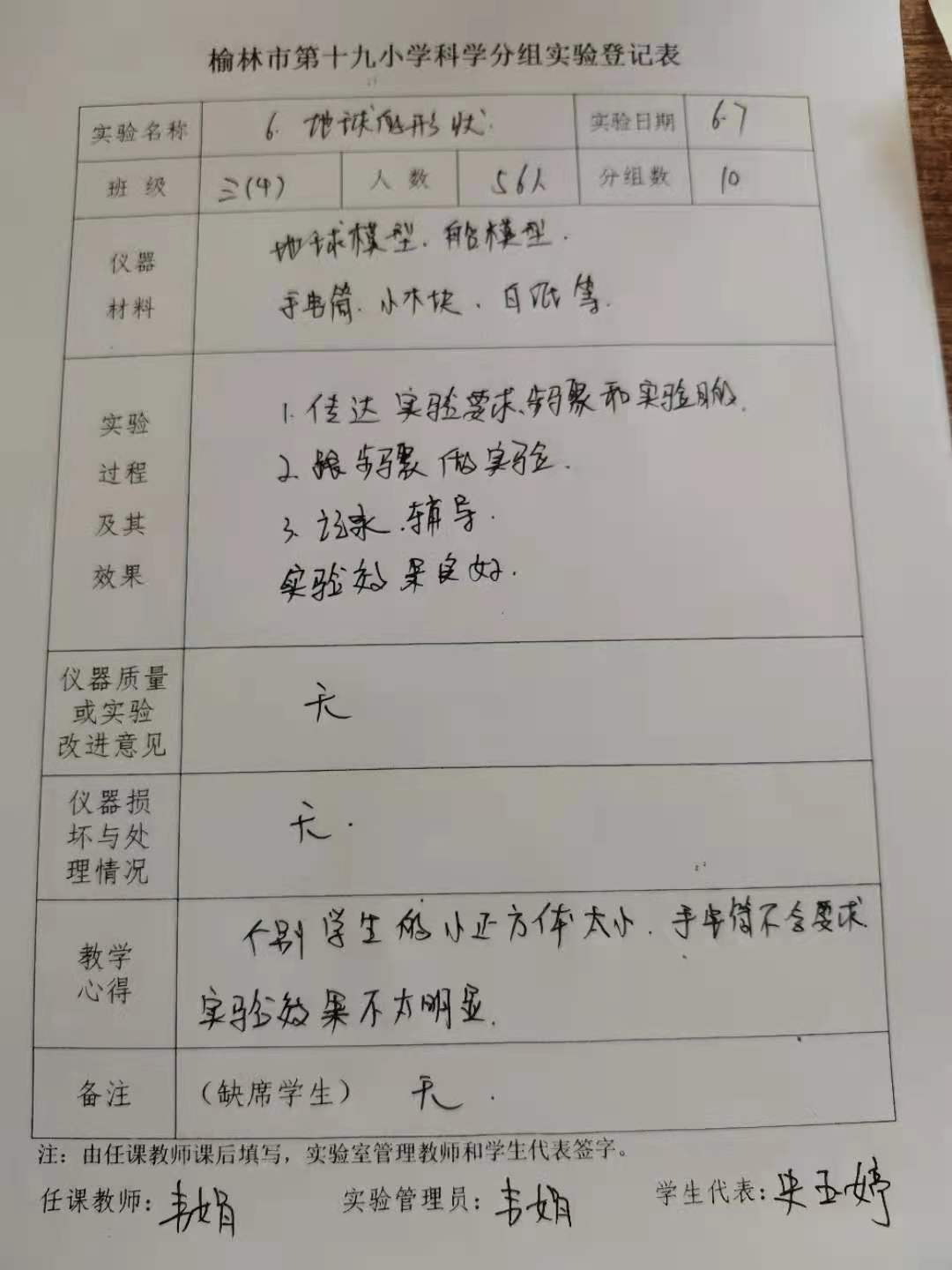 实验登记表