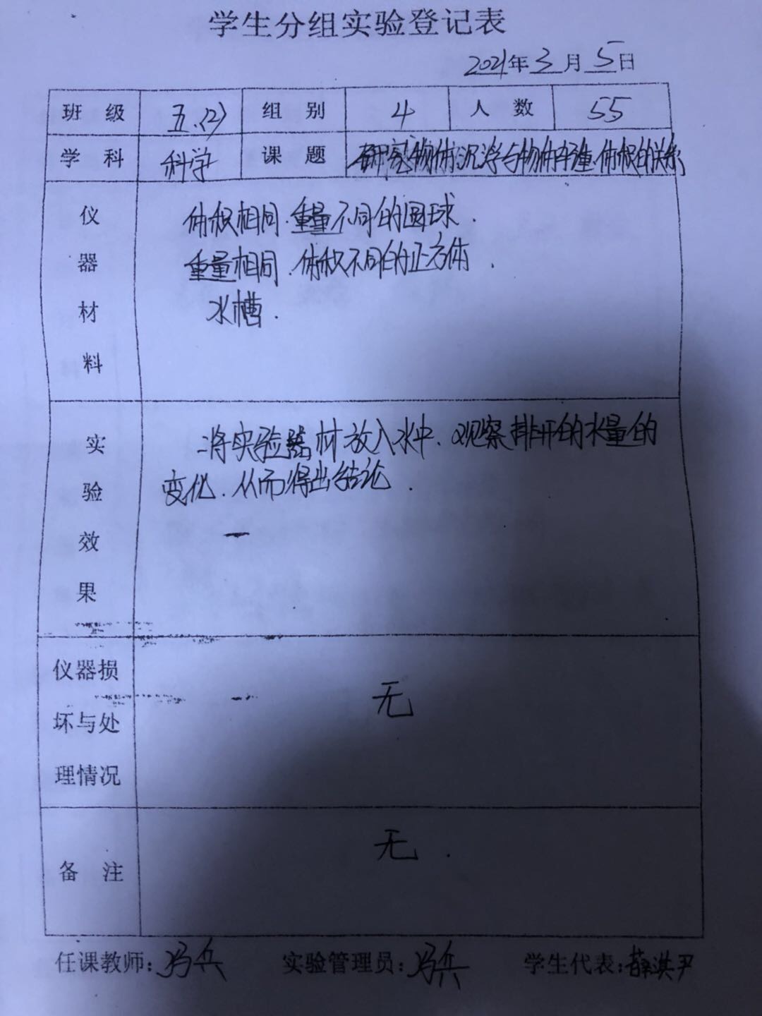 实验登记表
