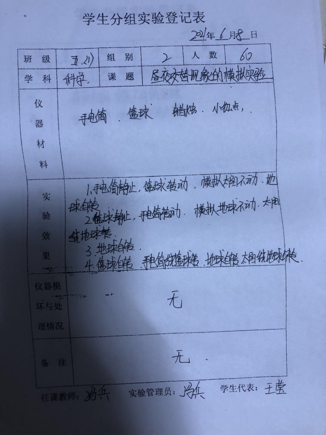 昼夜交替现象的模拟实验