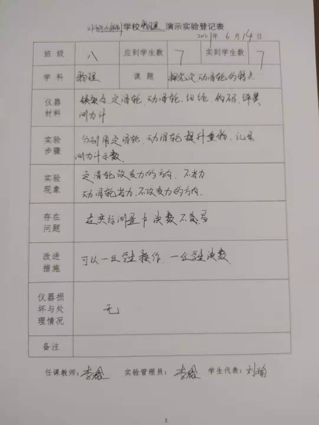 实验登记表