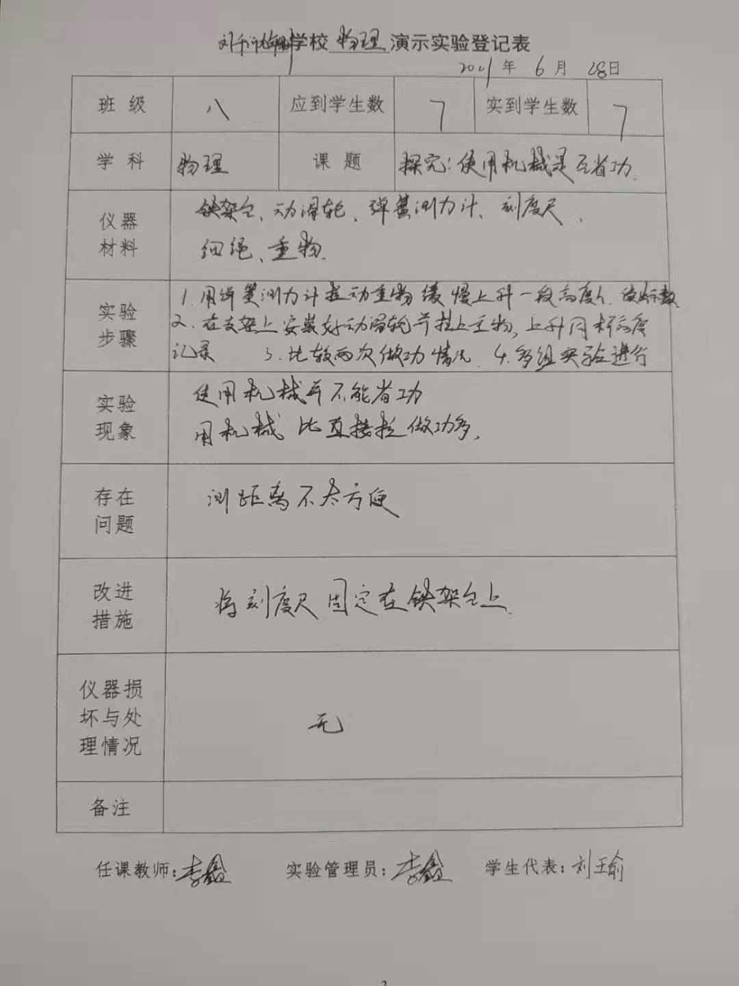 实验登记表