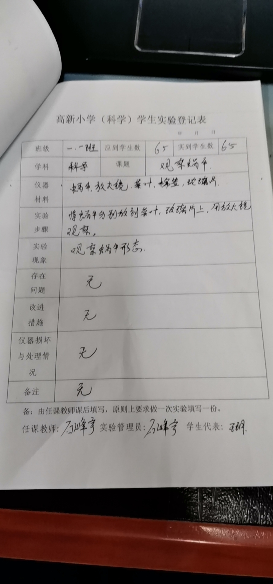 实验登记表
