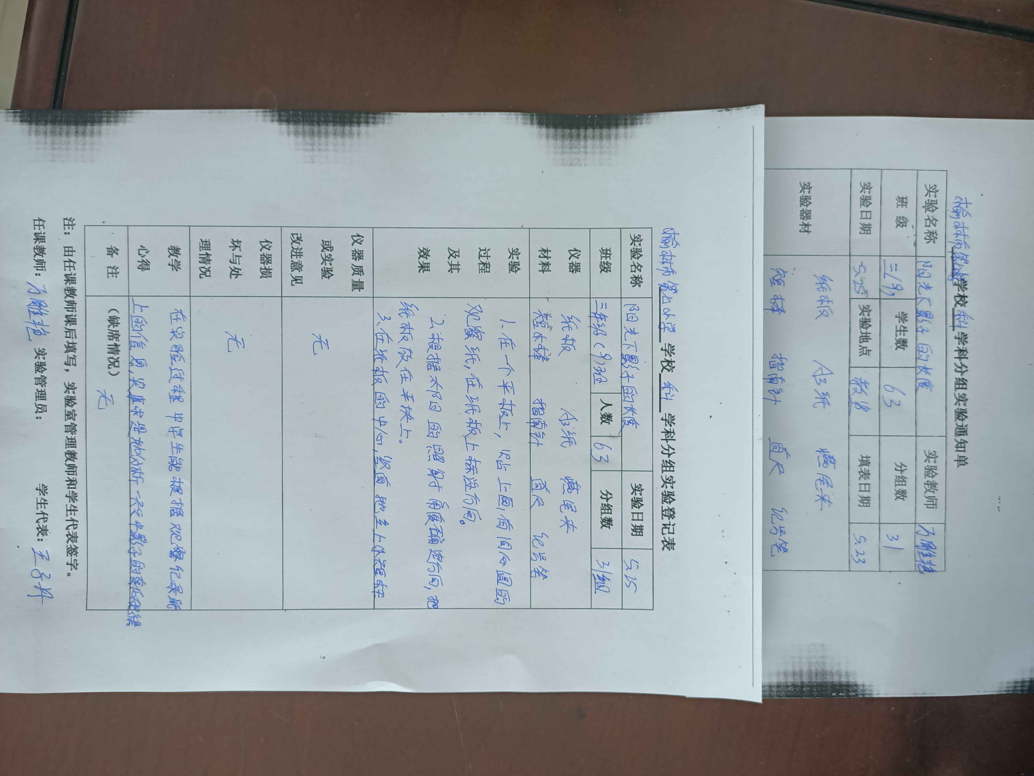 实验登记表