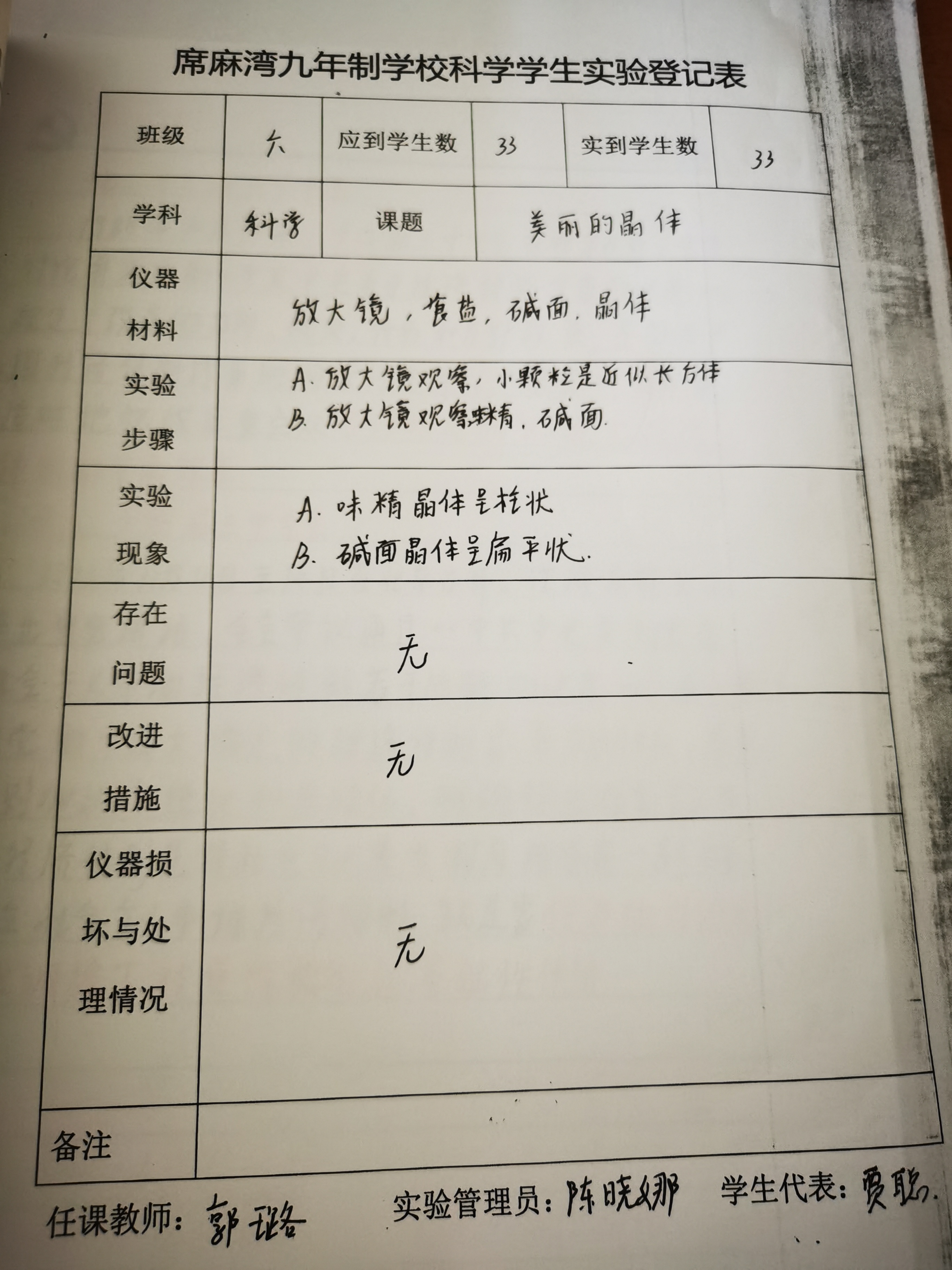 实验登记表