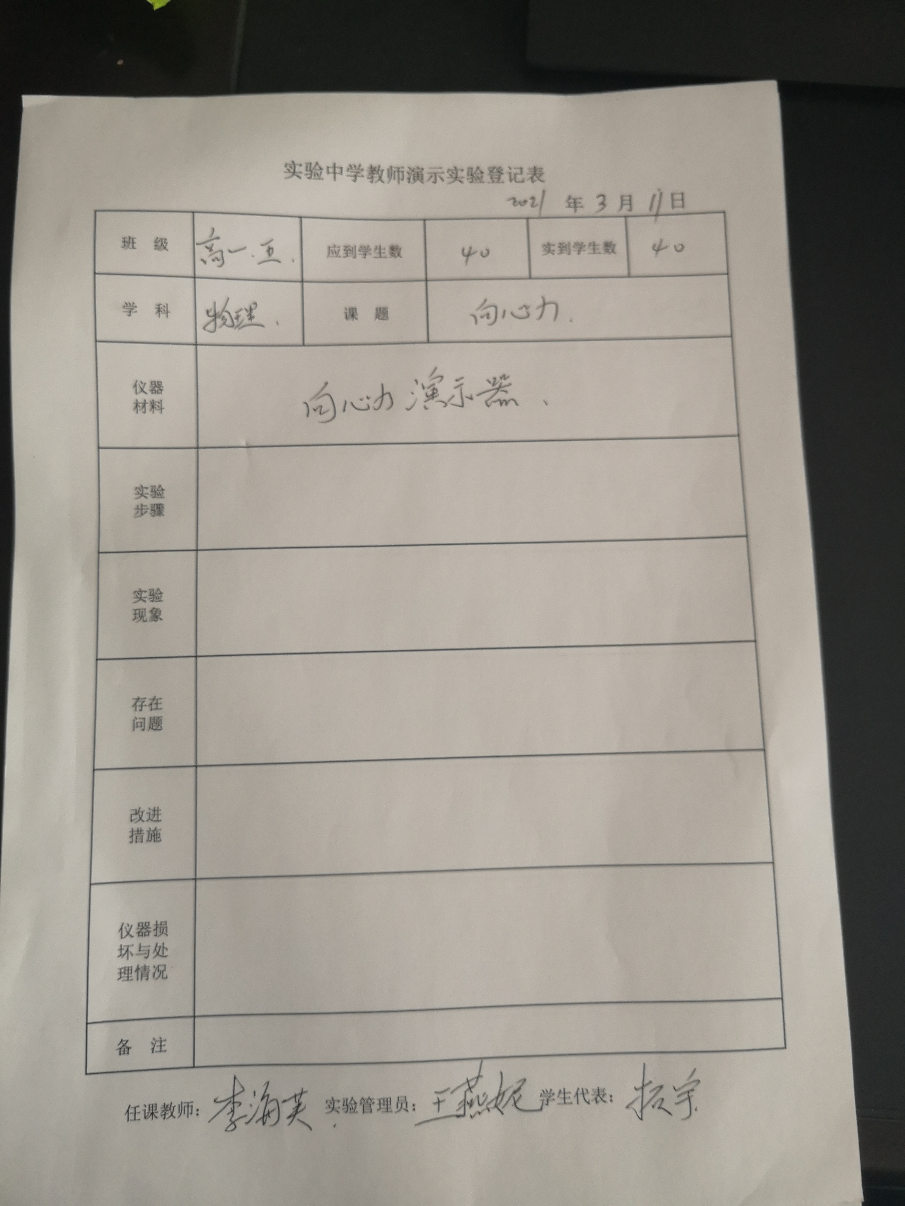 实验登记表