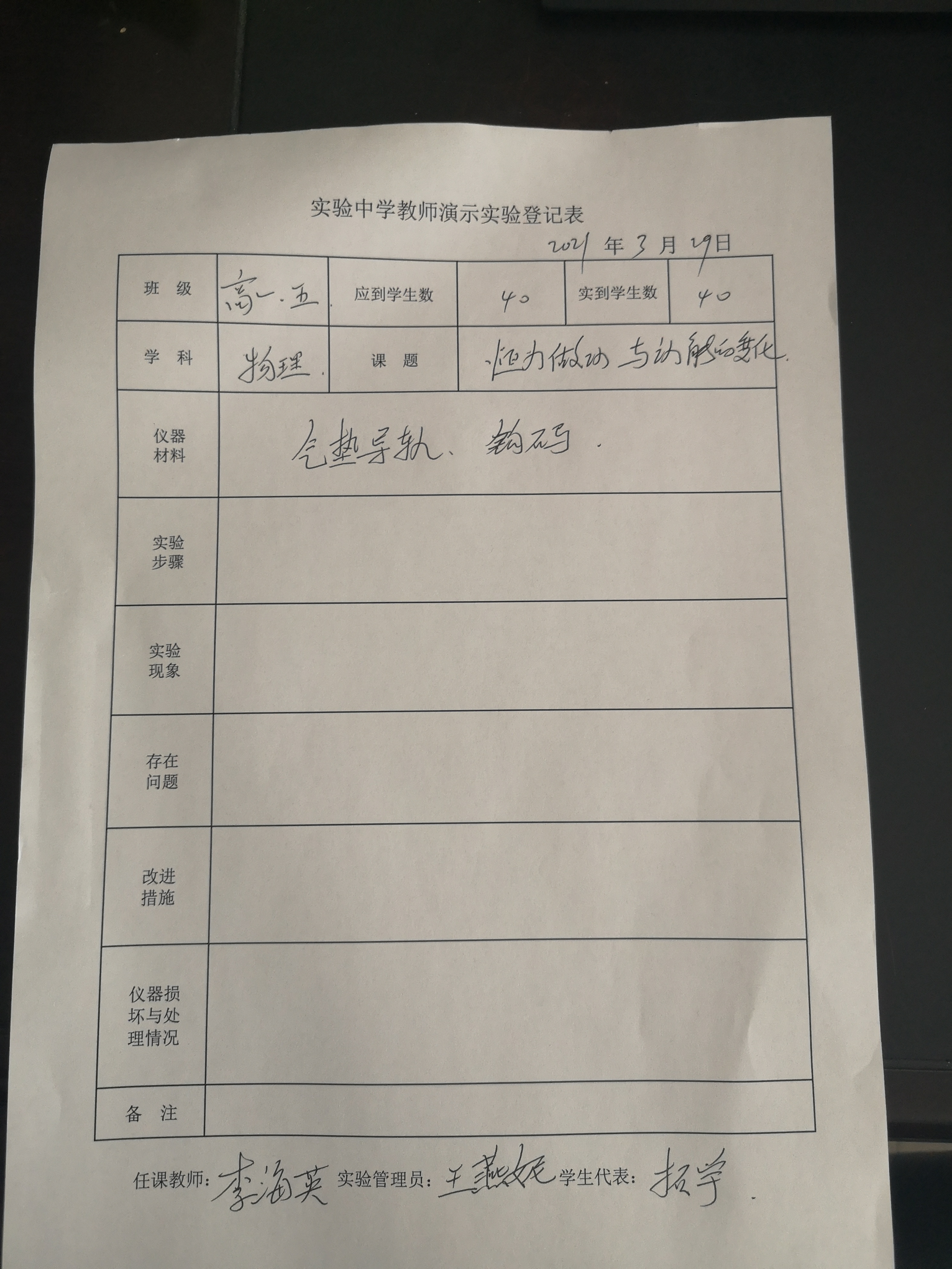 实验登记表