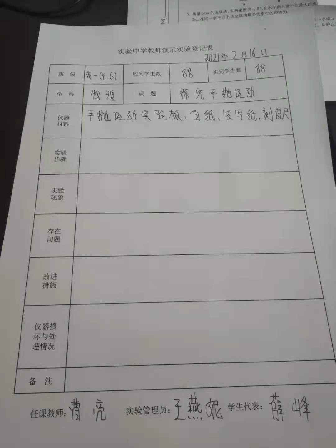 实验登记表