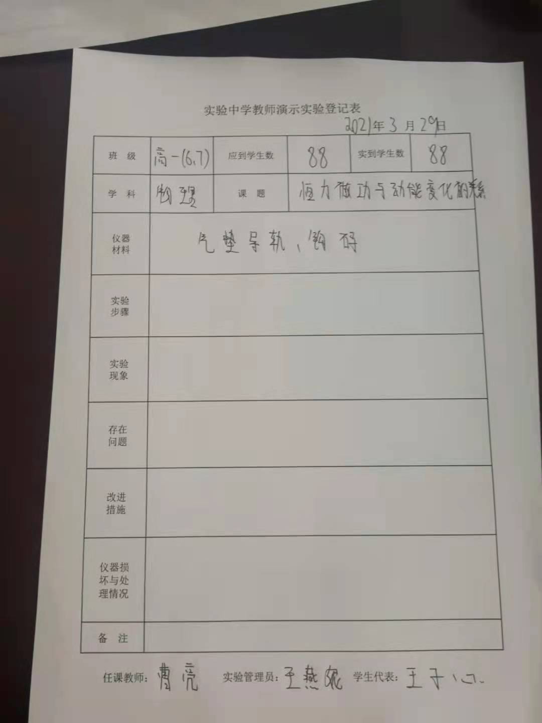 实验登记表