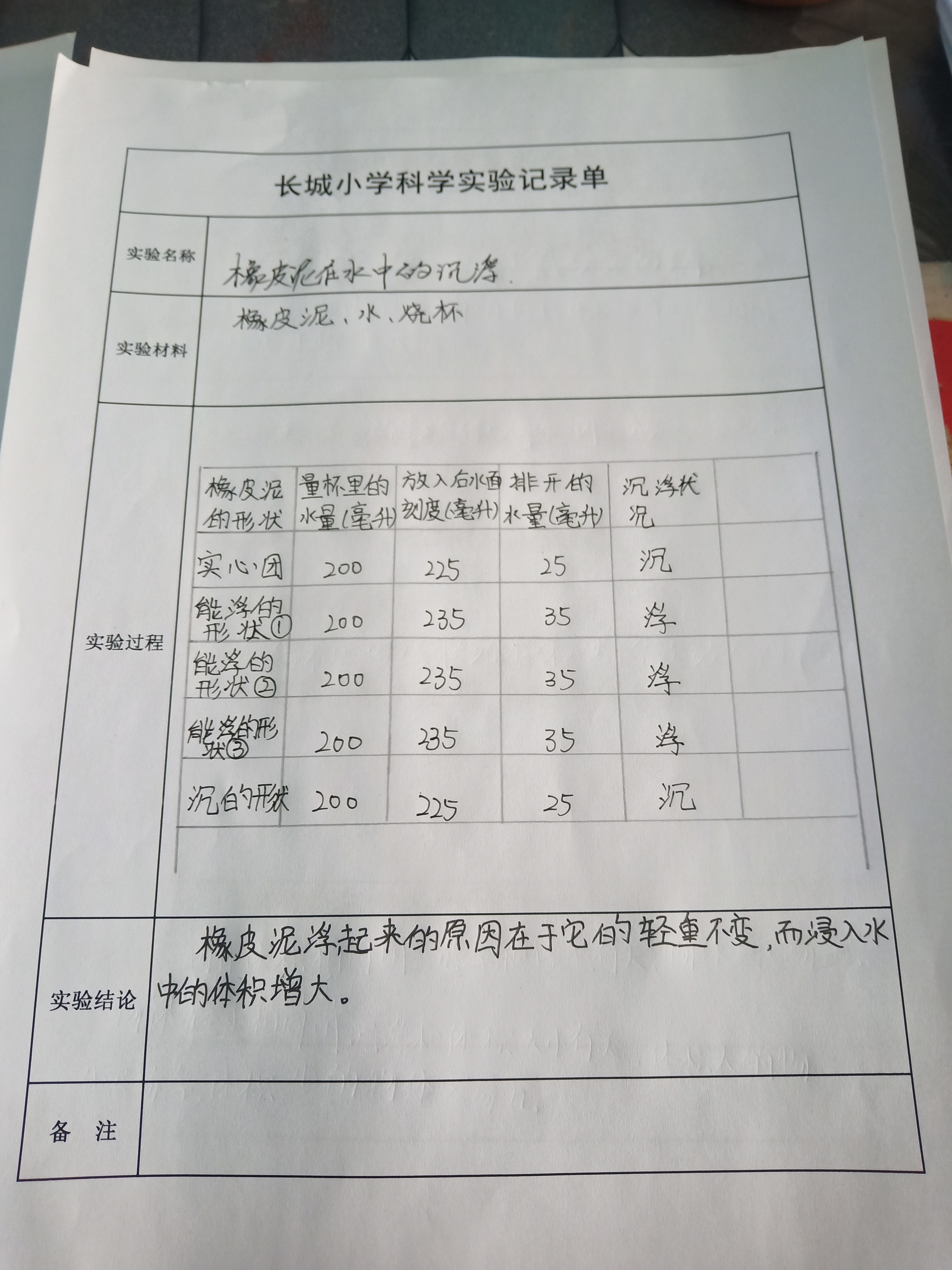 橡皮泥的沉浮