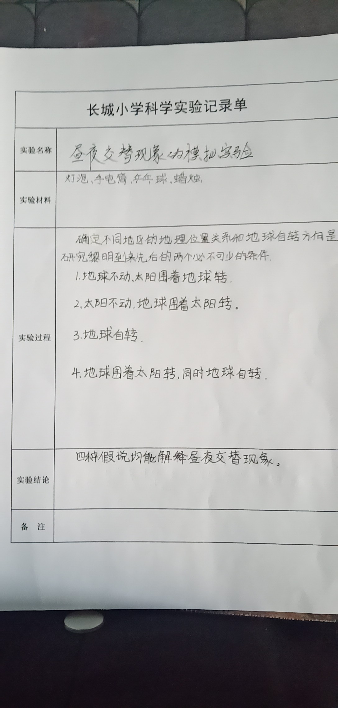 昼夜交替现象的模拟实验