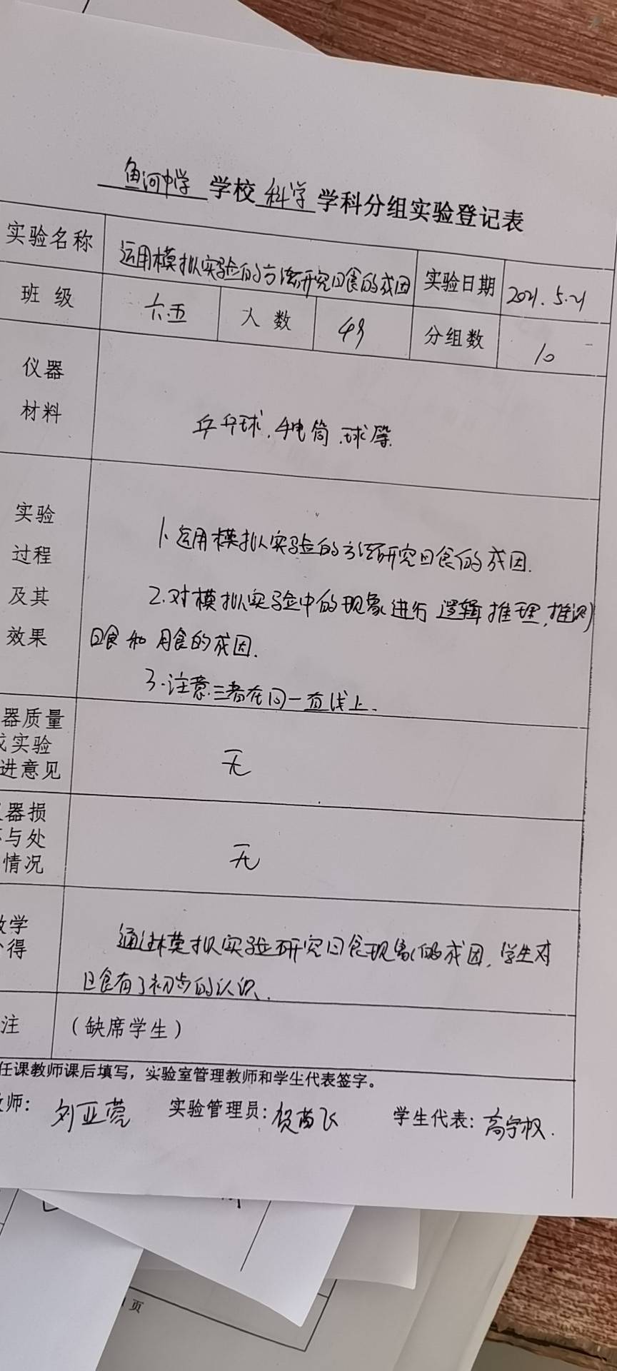 实验登记表