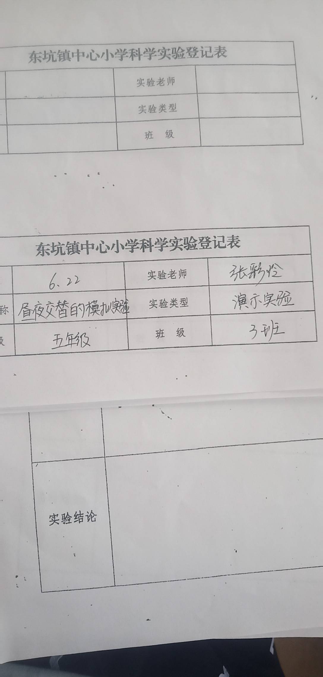 实验登记表