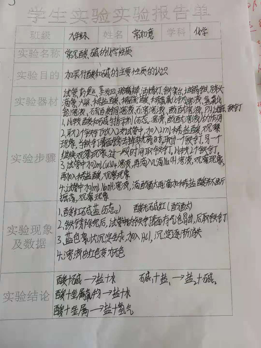常见酸、碱的化学性质