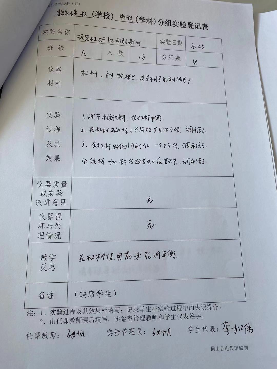 实验登记表