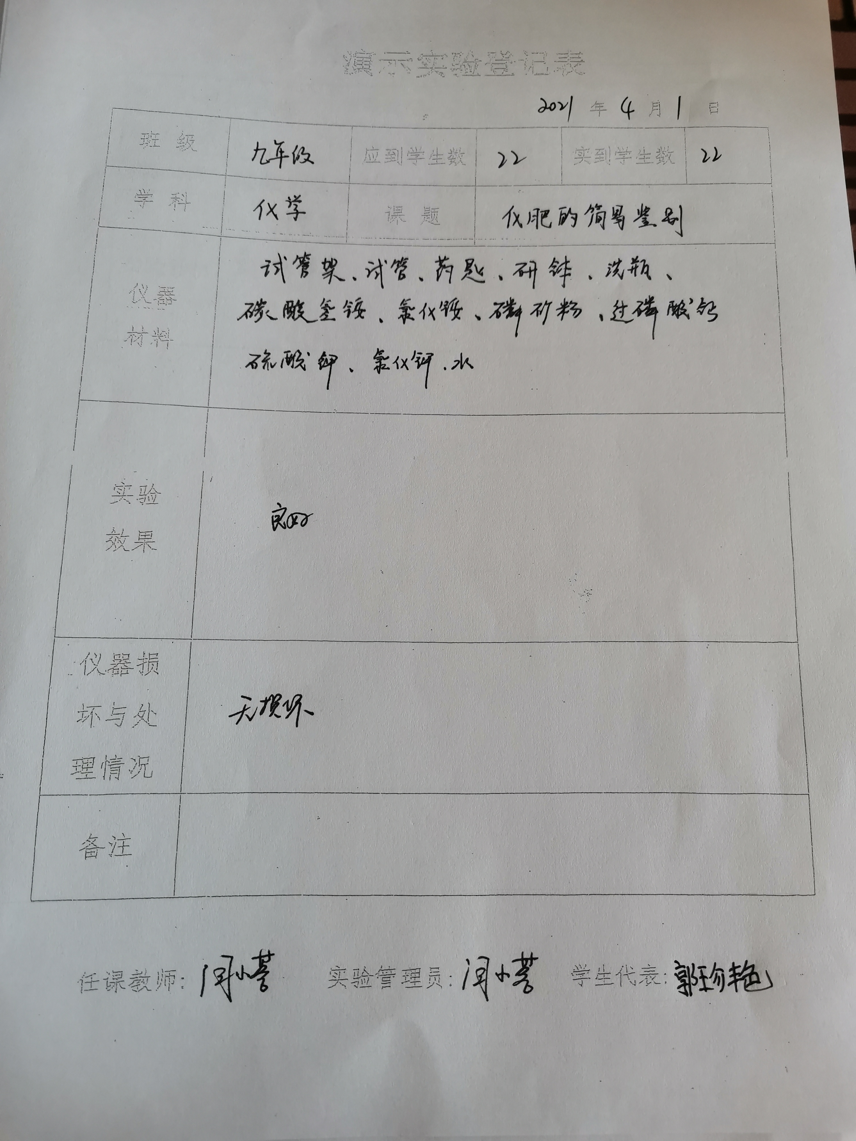 实验登记表