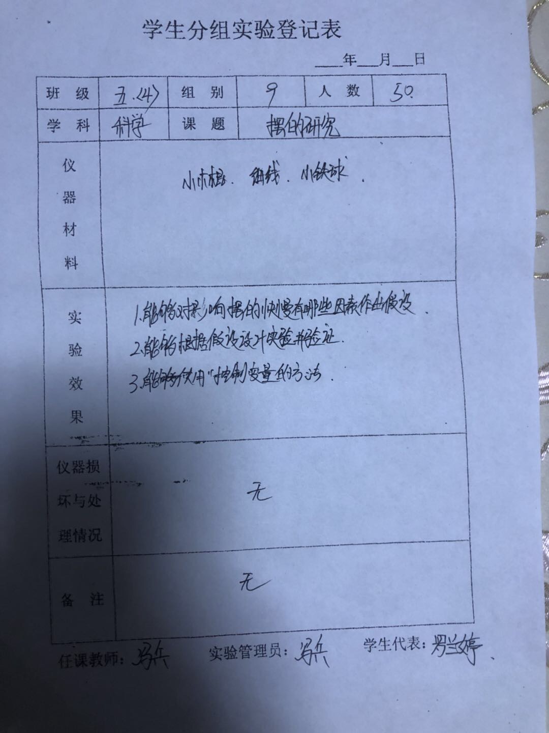 实验登记表