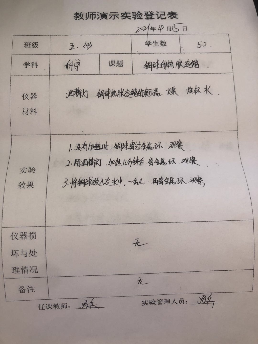 铜球的热胀冷缩