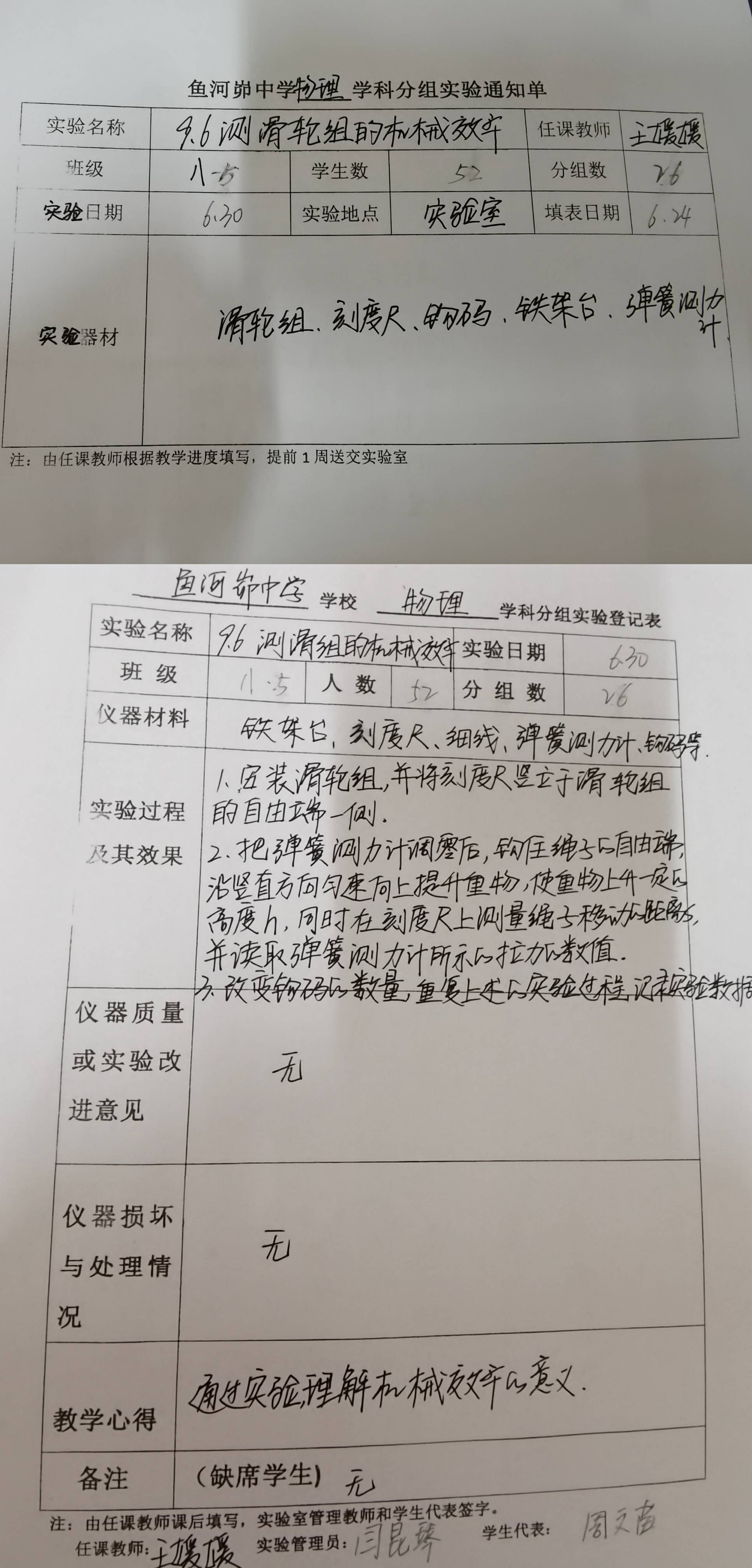 实验登记表