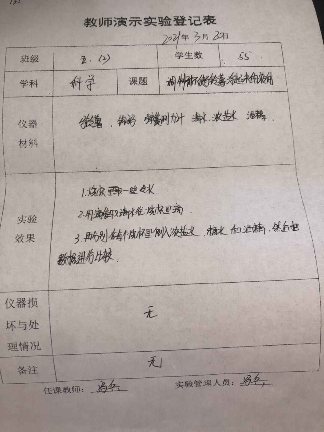 实验登记表