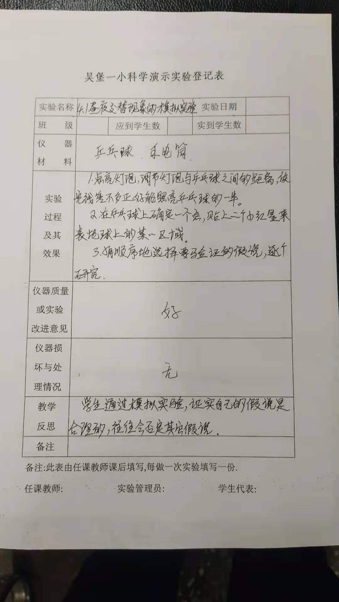 昼夜交替现象的模拟实验