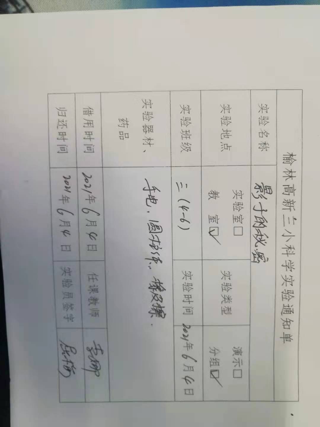 实验登记表