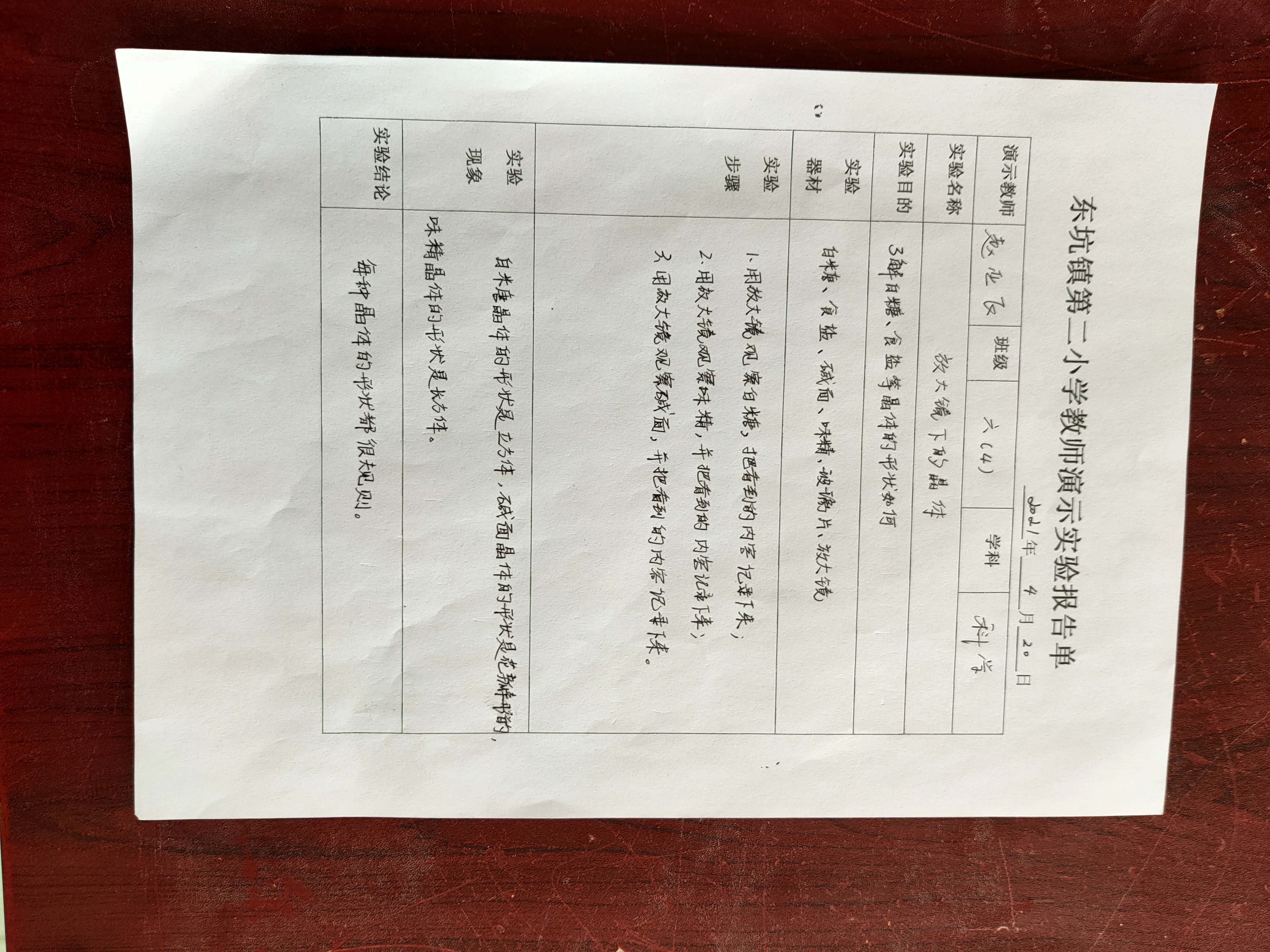 实验登记表