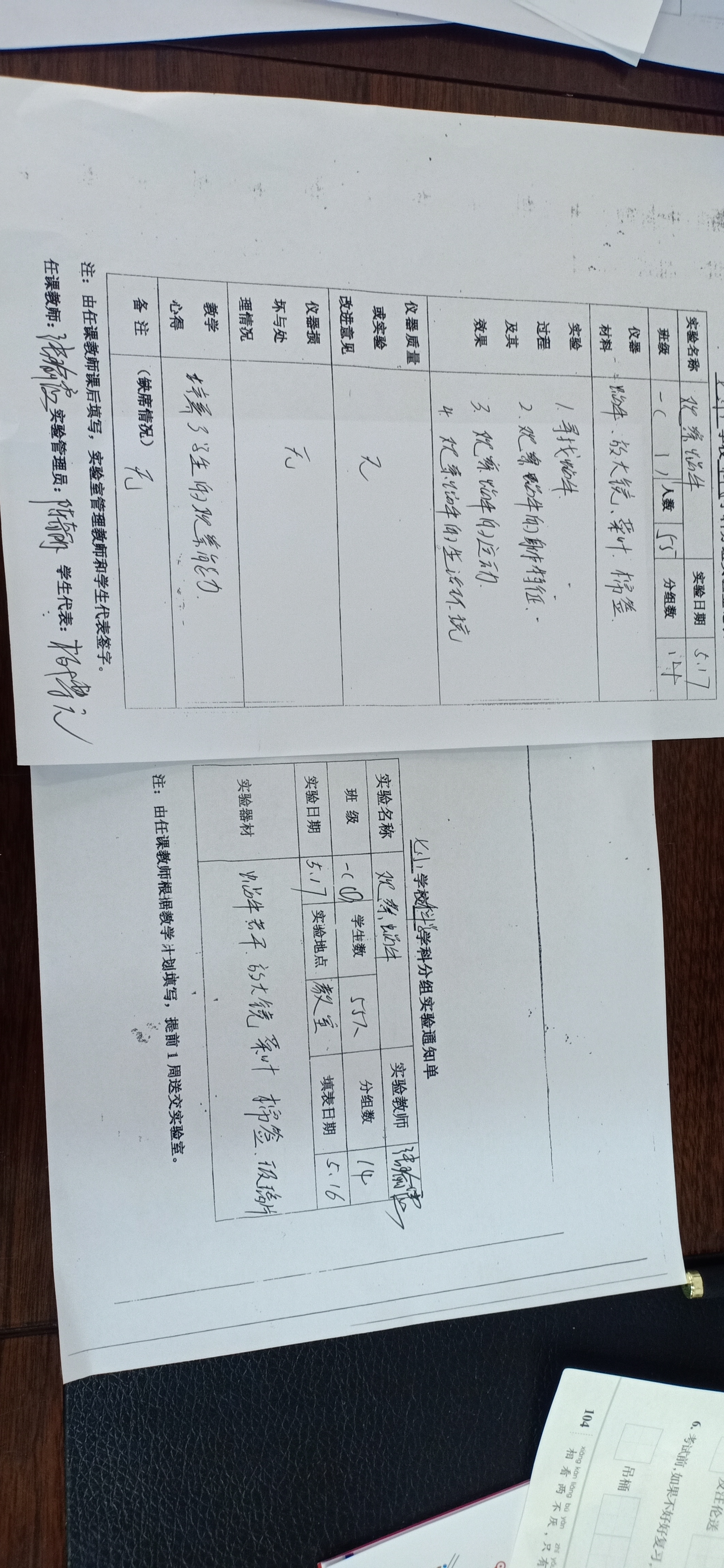 实验登记表