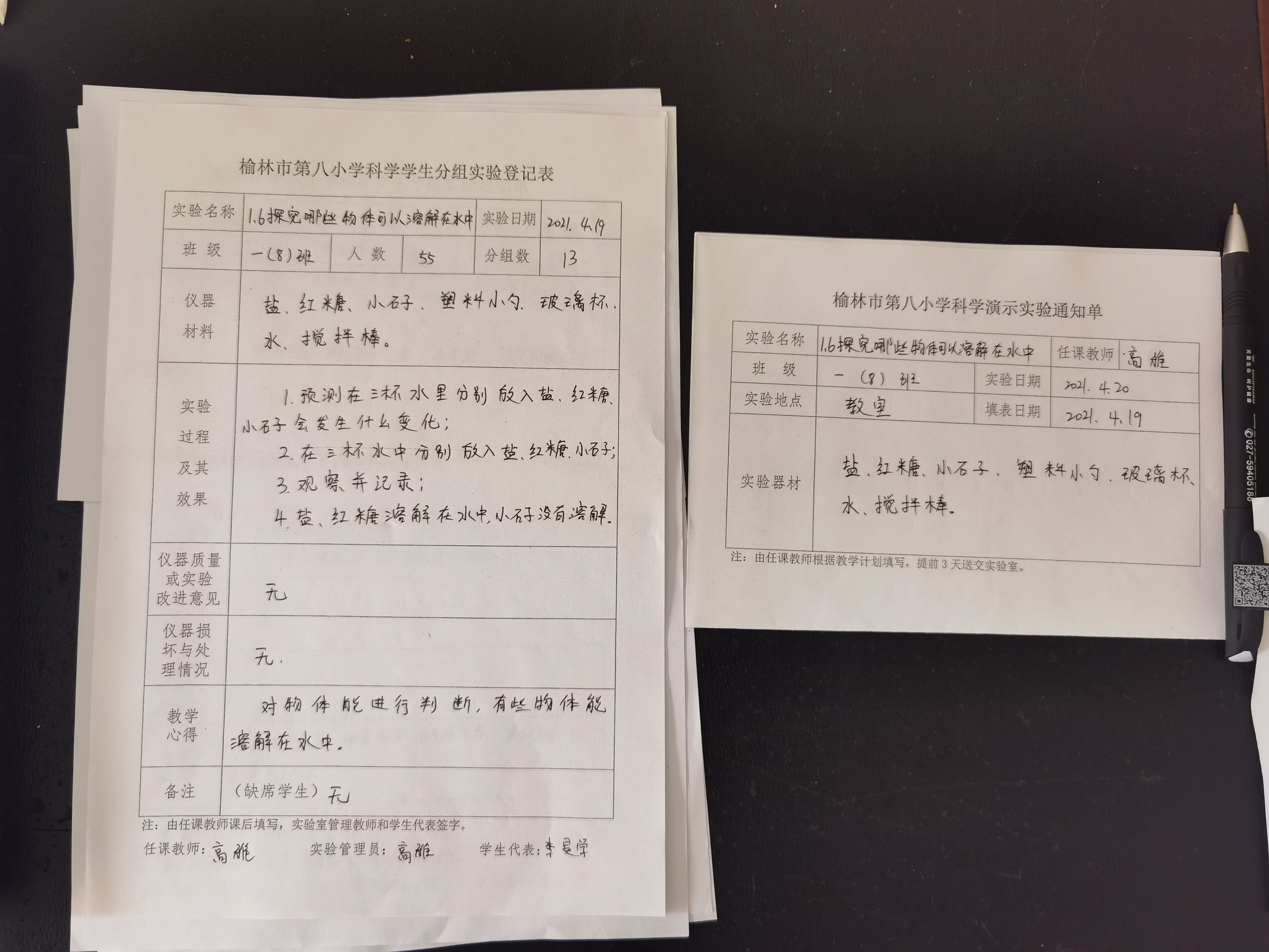 实验登记表