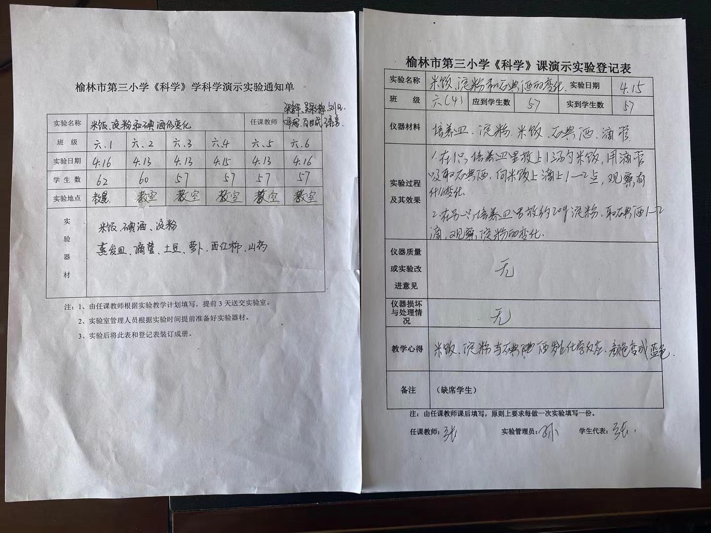 实验登记表