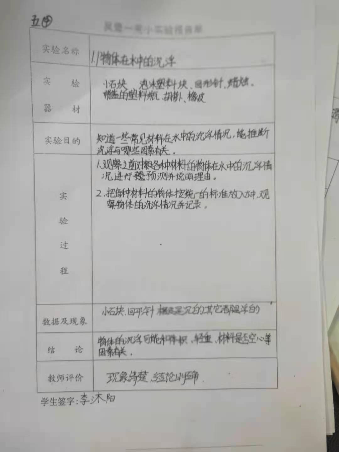 1.3橡皮泥在水中的沉浮