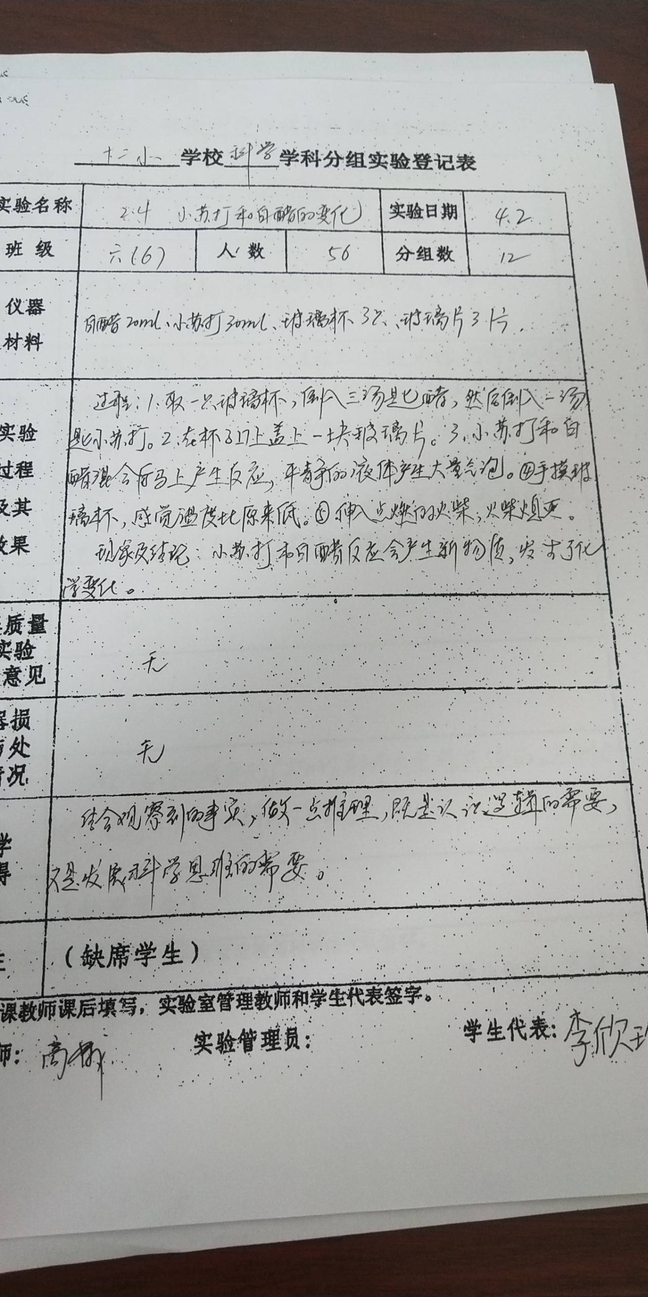 实验登记表