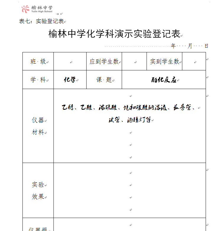 实验登记表