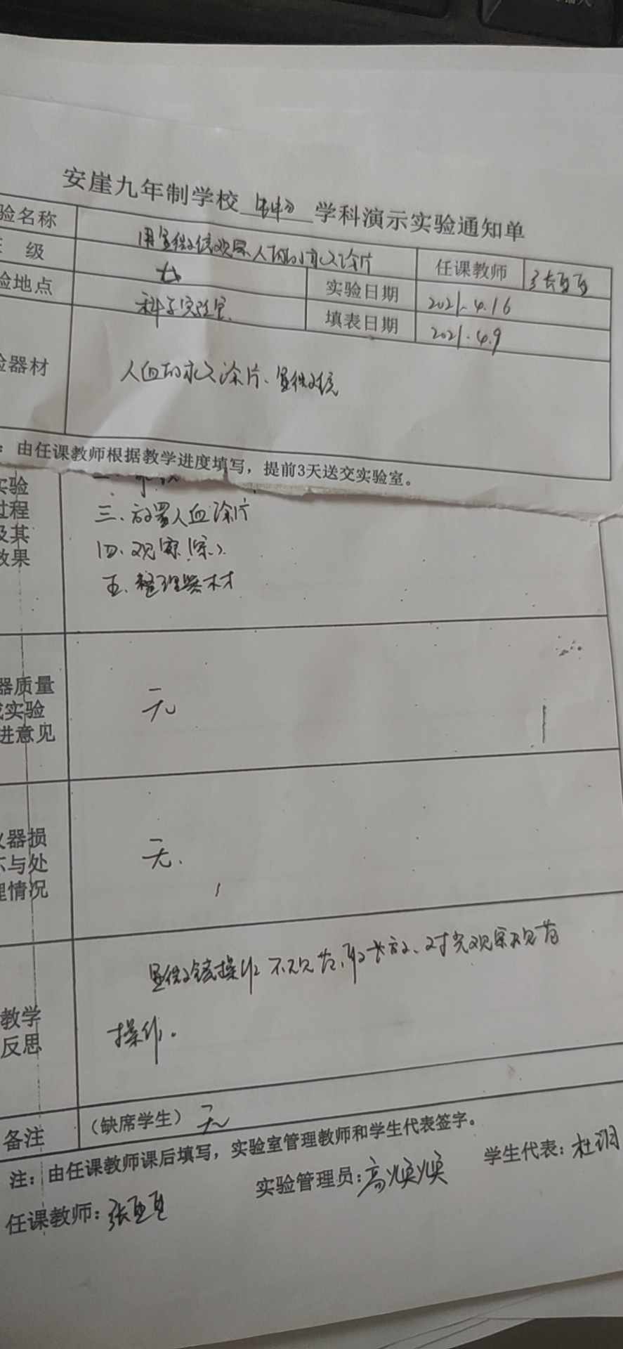 实验登记表