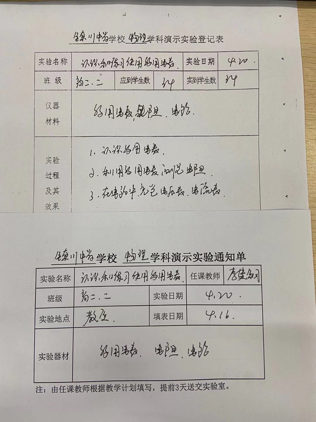 实验登记表