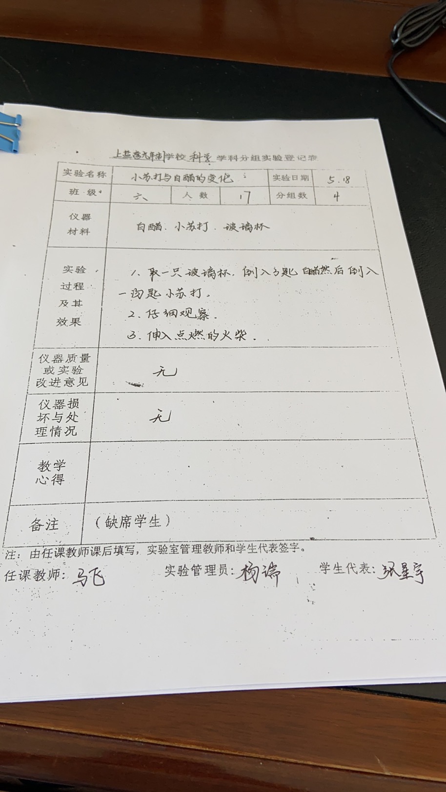 实验登记表