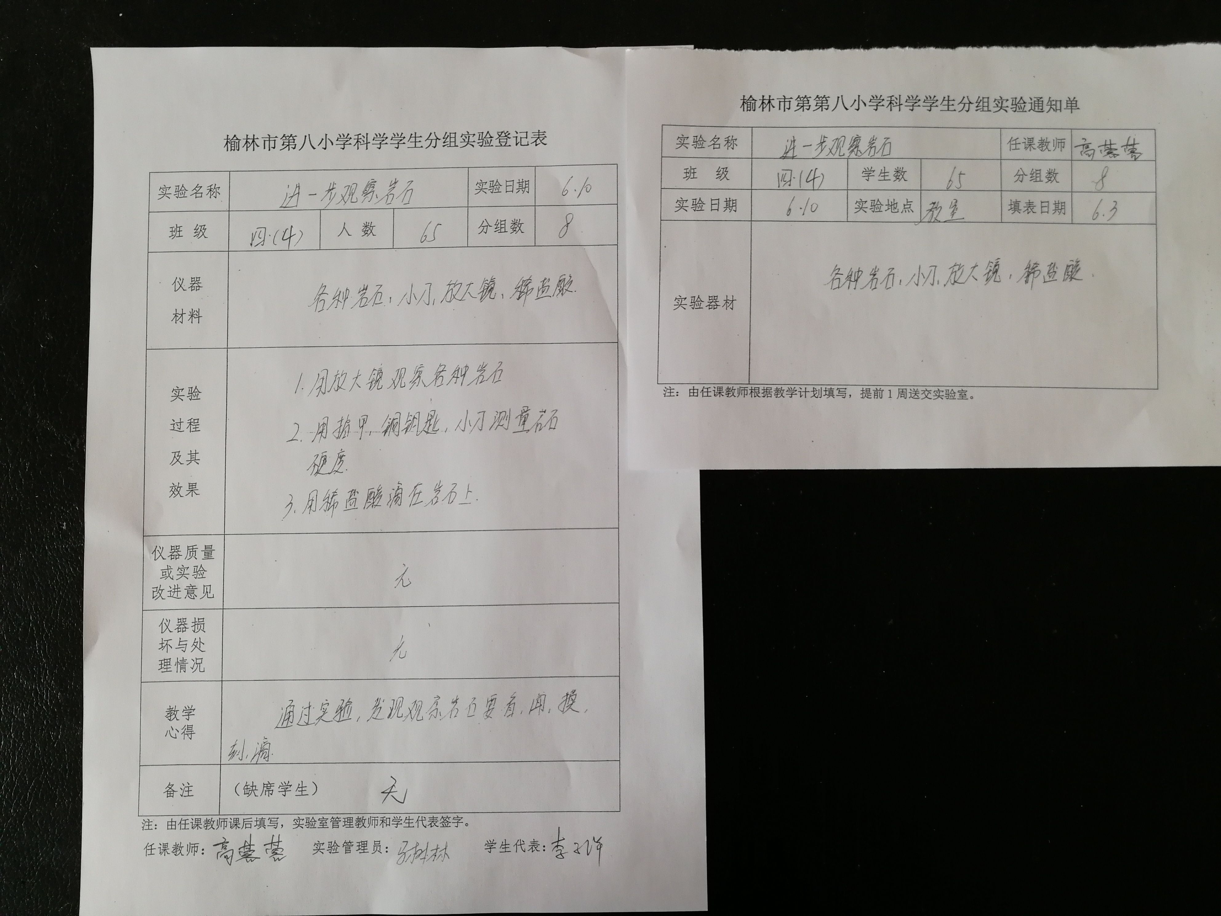 实验登记表