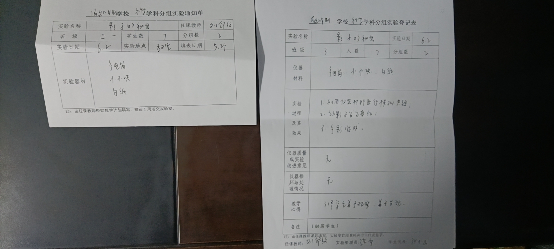 实验登记表