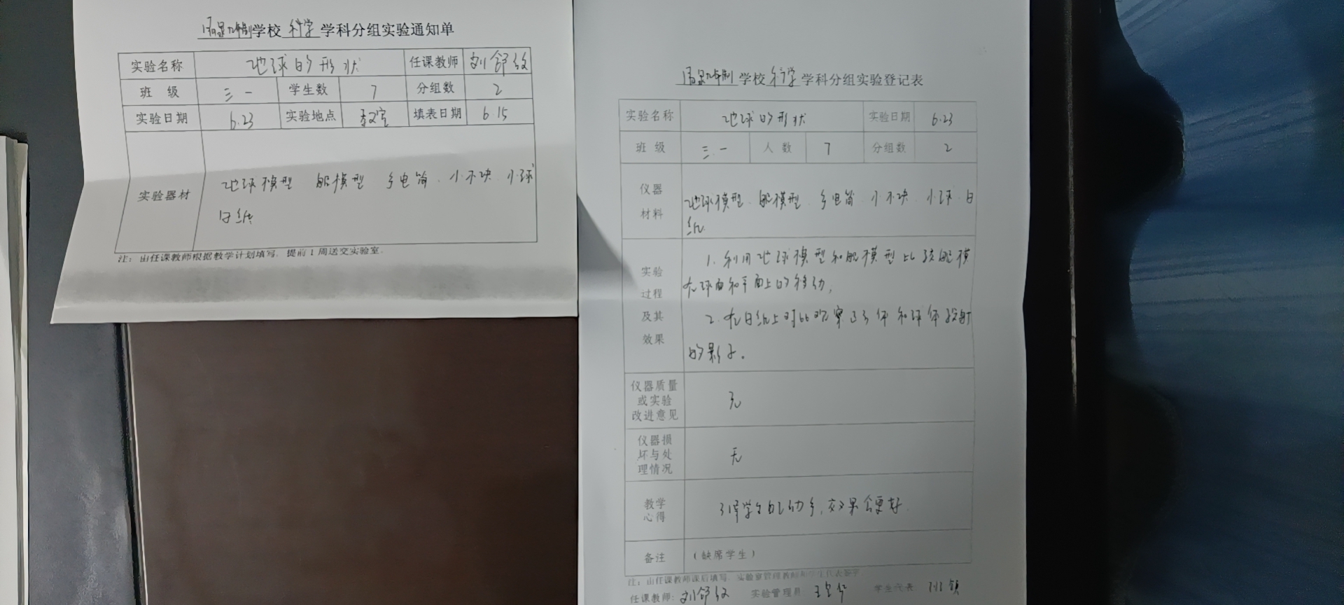 实验登记表