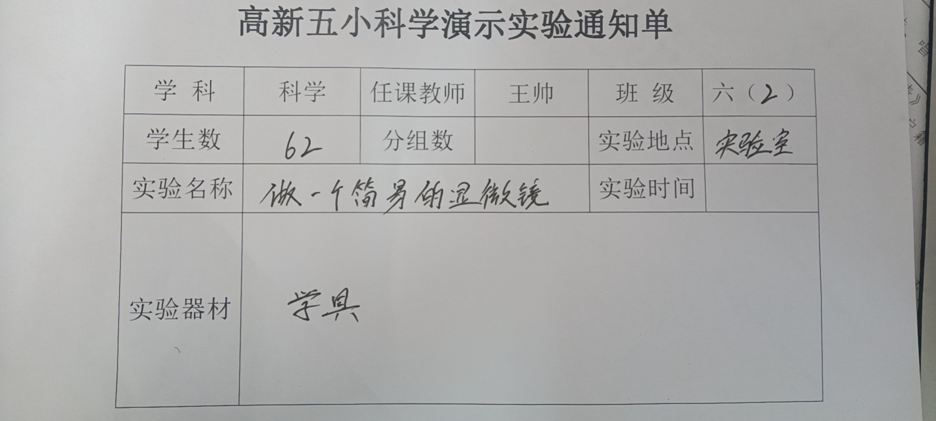 实验登记表