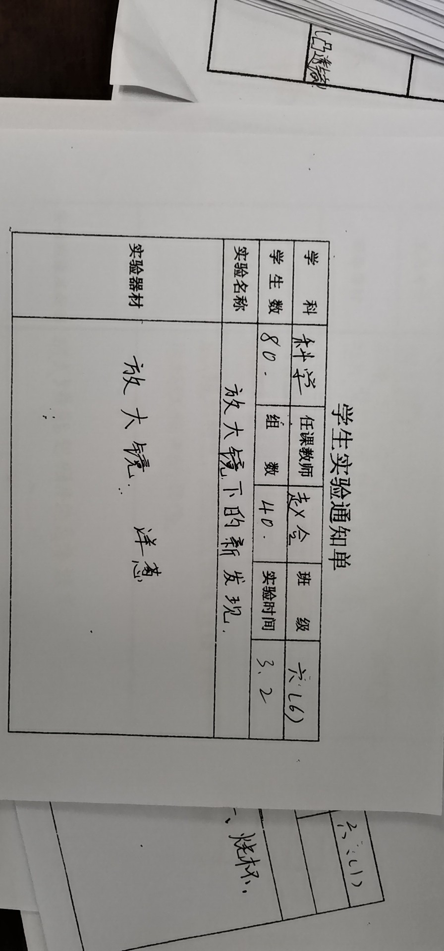 实验登记表