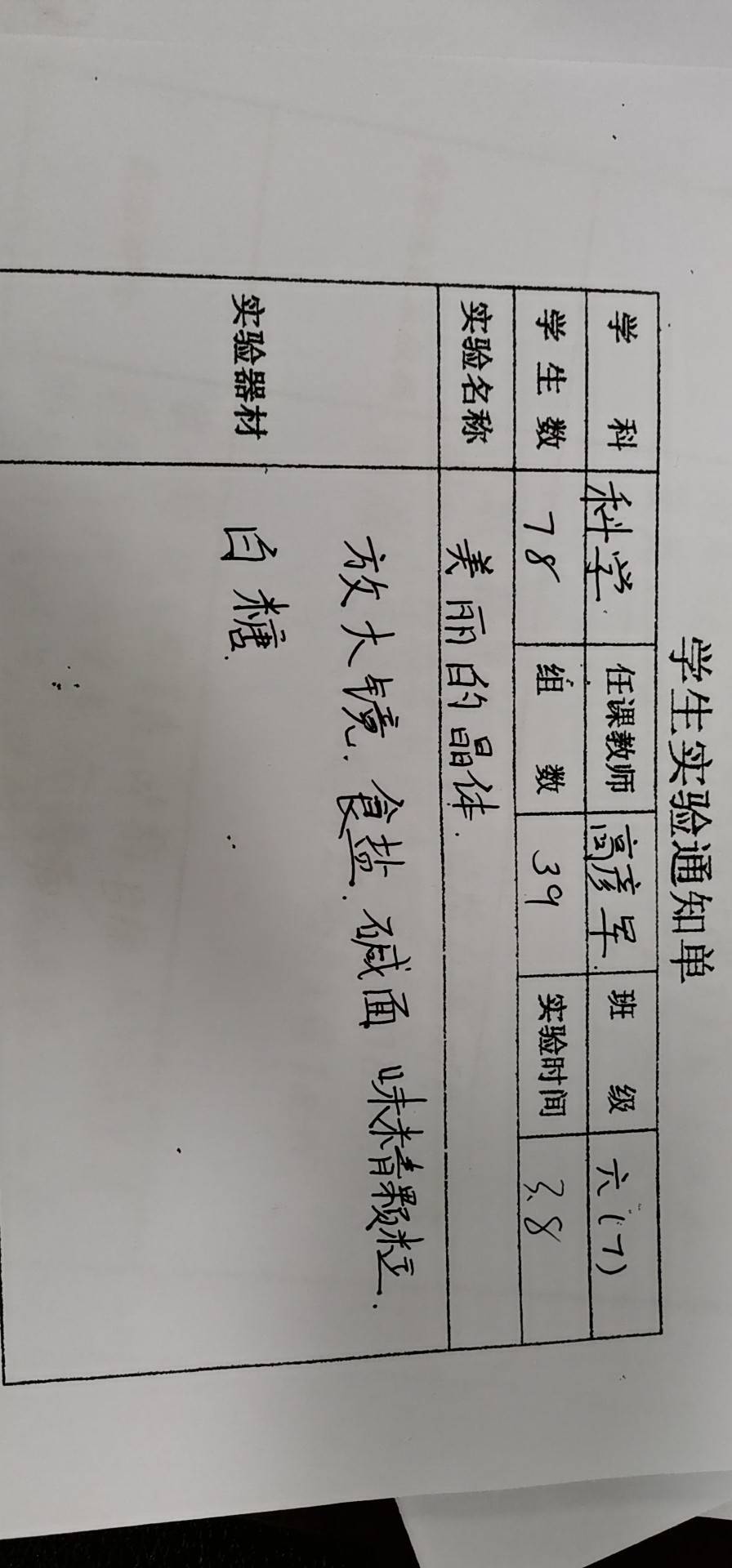 实验登记表